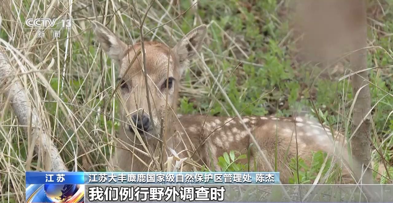 江蘇大豐麋鹿國家級自然保護(hù)區(qū)管理處 陳杰:我們例行野外巡查時(shí)發(fā)現(xiàn)了這頭小鹿,這是我們今年第一頭新生小鹿,每年的3月初,麋鹿開始產(chǎn)仔,到5月份會達(dá)到一個(gè)高峰期。