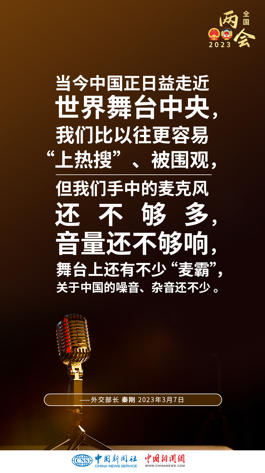 秦剛:當今中國正日益走近世界舞臺中央,我們比以往更容易“上熱搜”、被圍觀,但我們手中的麥克風還不夠多,音量還不夠響,舞臺上還有不少“麥霸”,關于中國的噪音、雜音還不少。提升中國的國際話語權,當代中國青年義不容辭。