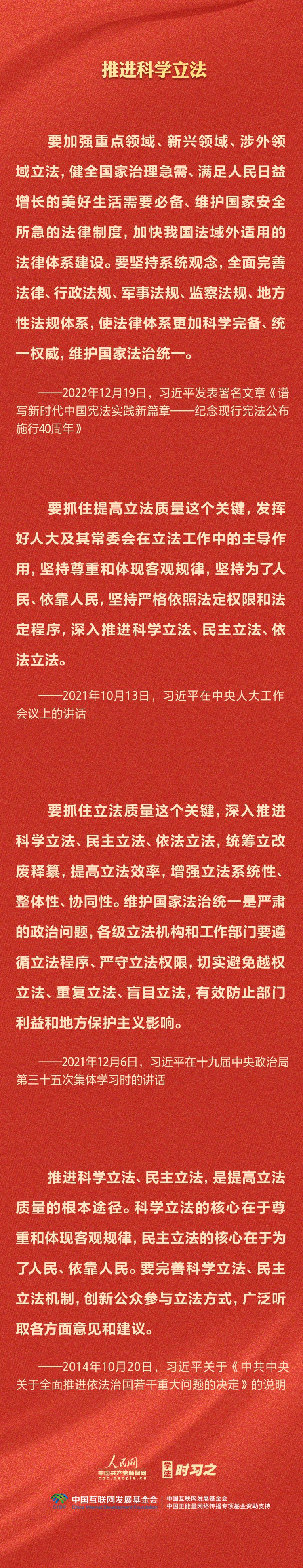 今年是貫徹落實黨的二十大精神的開局之年。中共中央政治局決定從今年4月開始,在全黨自上而下開展學習貫徹習近平新時代中國特色社會主義思想主題教育。習近平法治思想是習近平新時代中國特色社會主義思想的重要組成部分,人民網·中國共產黨新聞網推出學法時習之·學習習近平法治思想系列策劃,本篇聚焦“堅持全面推進科學立法、嚴格執法、公正司法、全民守法”。