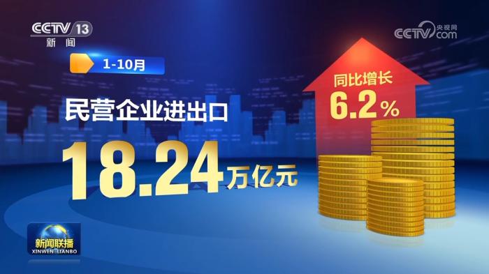 新動能帶動作用持續釋放,推動外貿領域積極因素累積增多。前三季度跨境電商進出口額達1.7萬億元,同比增長14.4%,保持較快增長。貿易結構優化升級,1—10月,我國一般貿易進出口增長1.8%,占我國外貿總值的64.9%,比去年同期提升1.1個百分點。民營企業進出口18.24萬億元,同比增長6.2%,成為穩外貿主力軍。