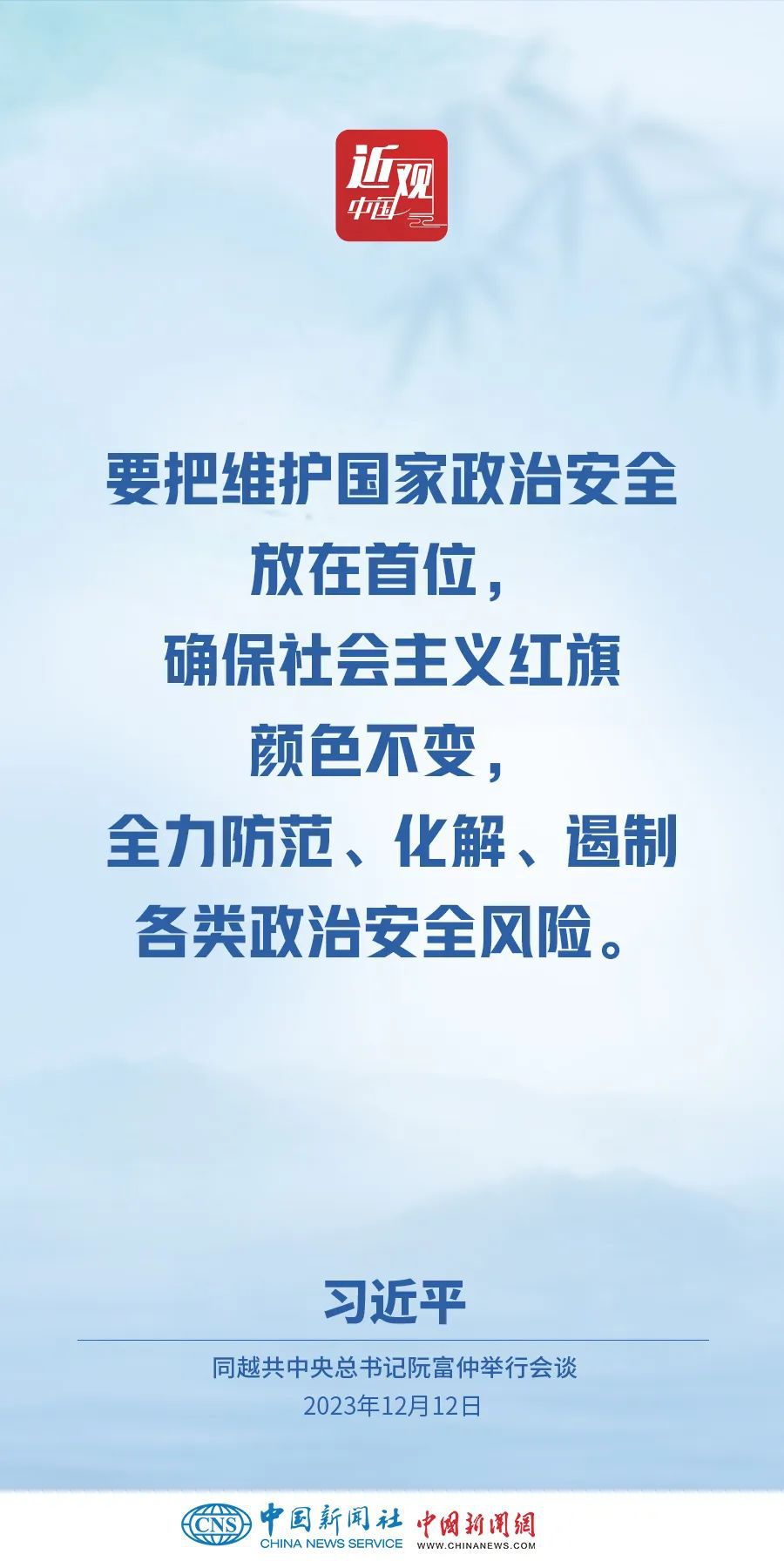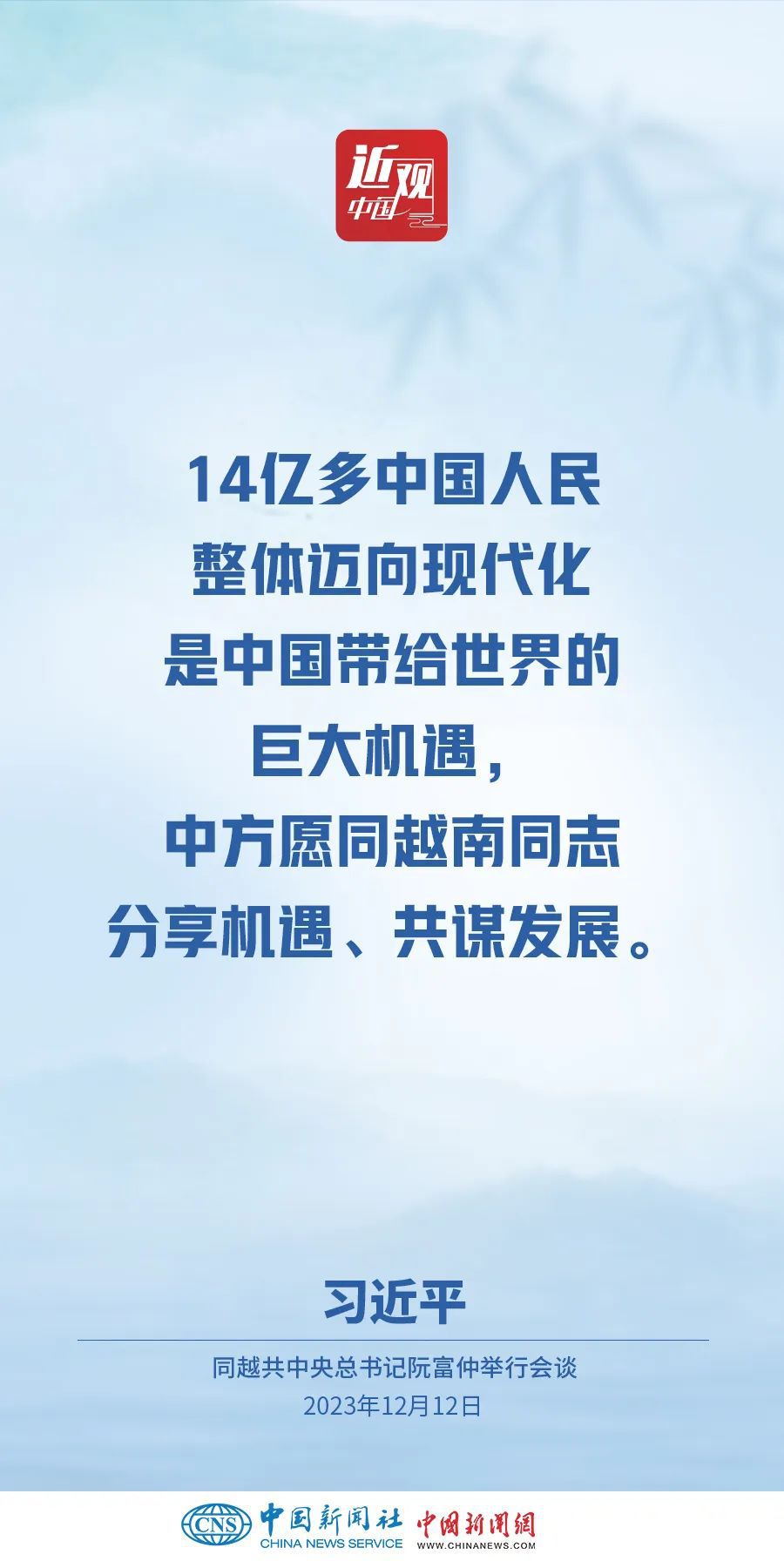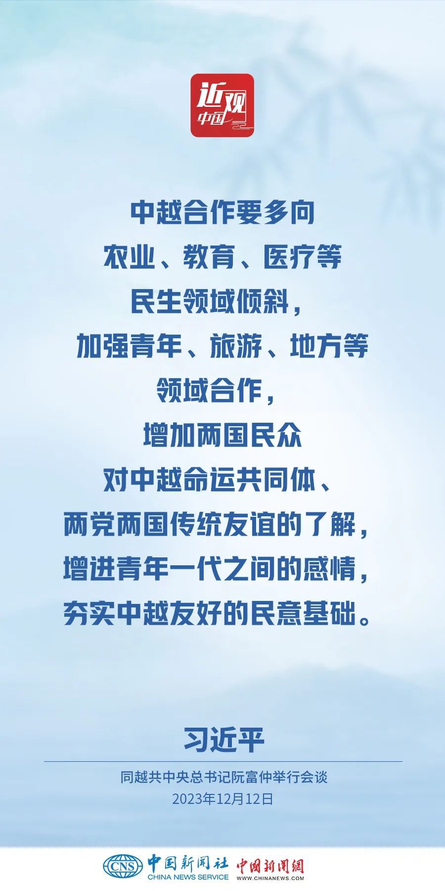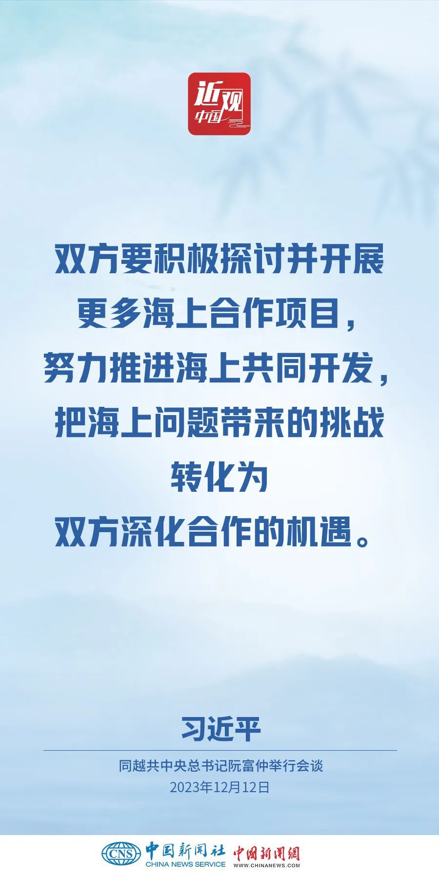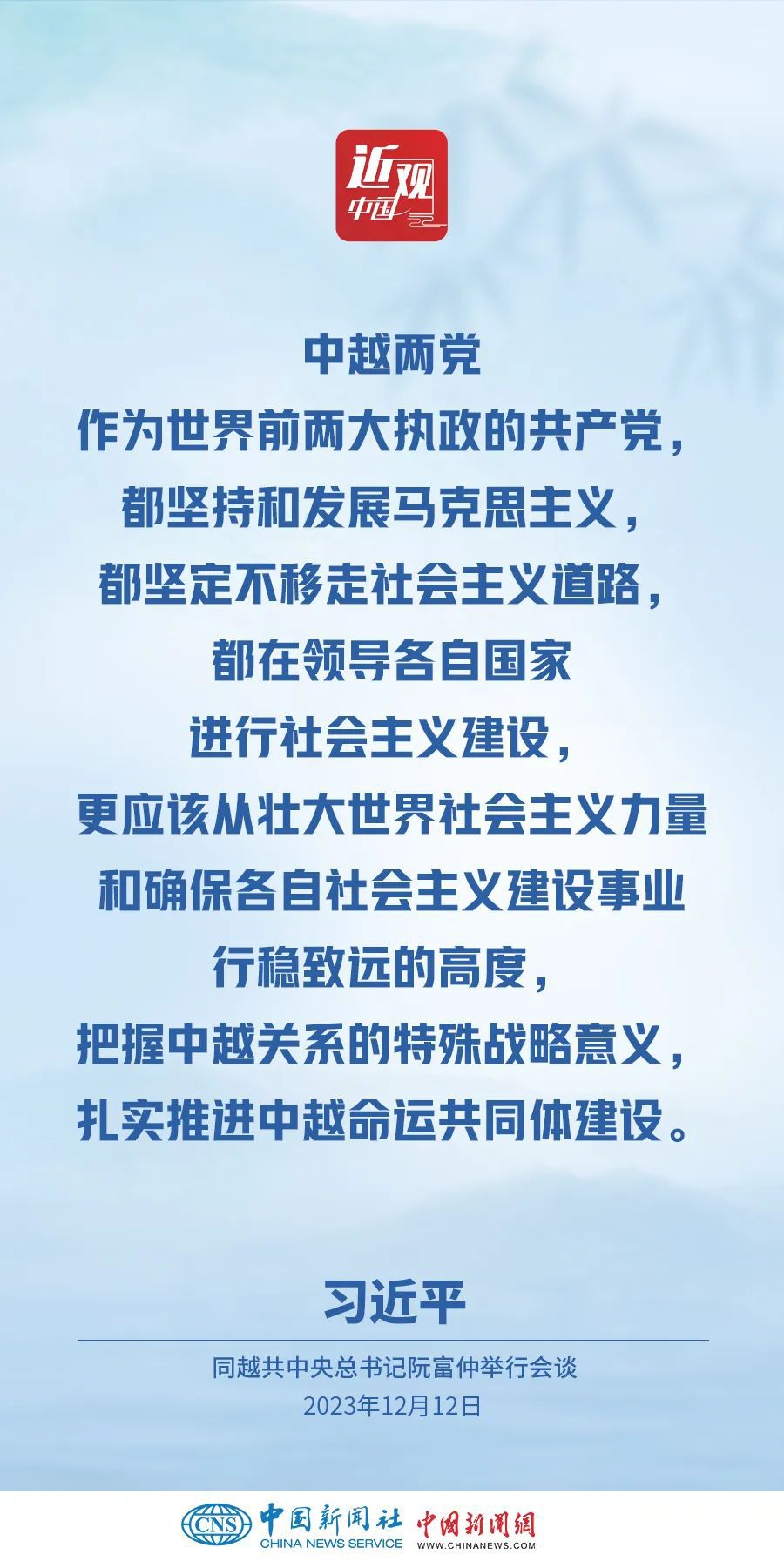 當地時間12月12日下午,剛剛抵達河內的中共中央總書記、國家主席習近平在越共中央駐地同越共中央總書記阮富仲舉行會談。雙方宣布中越兩黨兩國關系新定位,在深化中越全面戰略合作伙伴關系基礎上,攜手構建具有戰略意義的中越命運共同體。習近平指出——