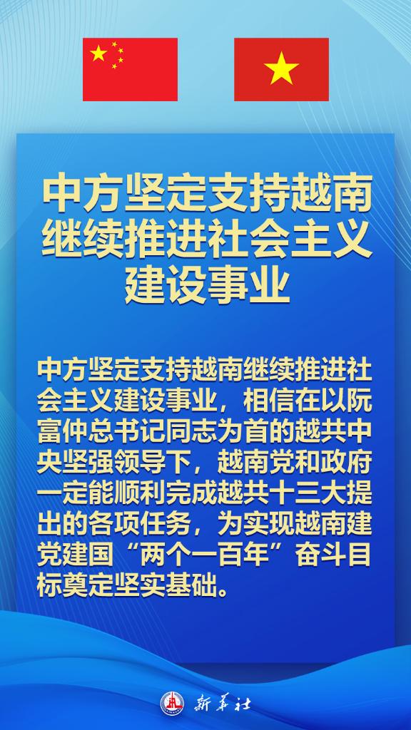 兩位總書記都認為,中越作為友好近鄰,理想相同,理念相通。作為好鄰居、好伙伴、好兄弟、好同志,中越構建具有戰略意義的命運共同體具有天時、地利、人和的獨特優勢。雙方應該繼承老一輩領導人締結的傳統友誼,共同努力構建命運共同體,走好各自的現代化道路,實現互利共贏、美美與共,造福兩國人民,也為地區和平與繁榮作出積極貢獻。