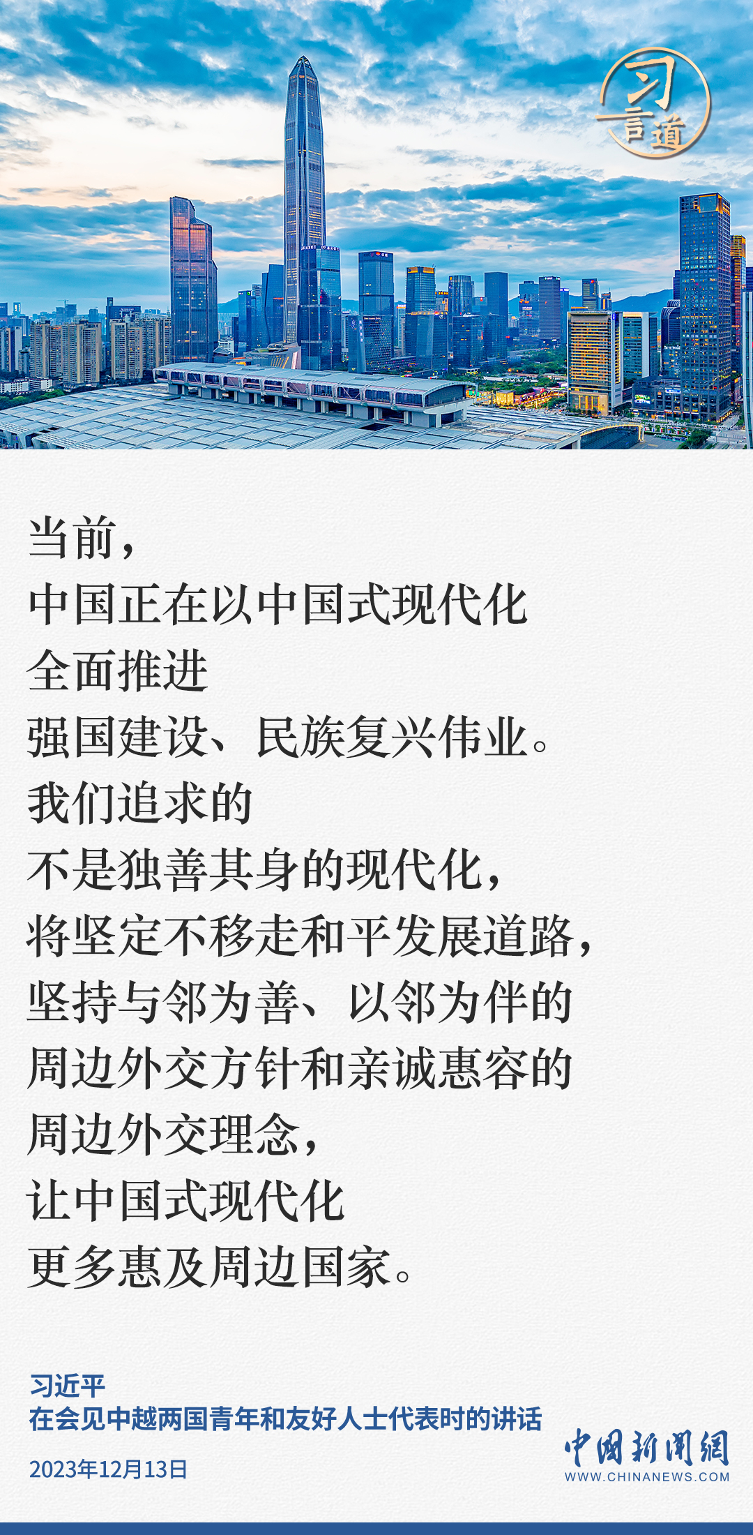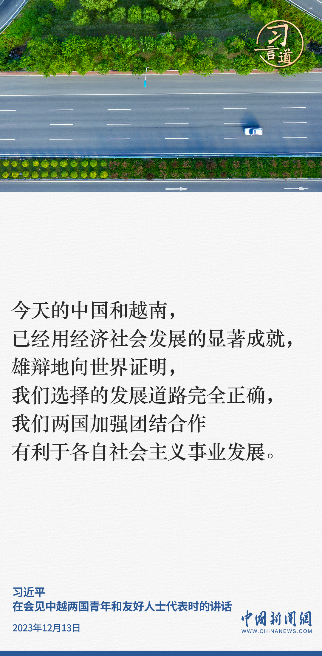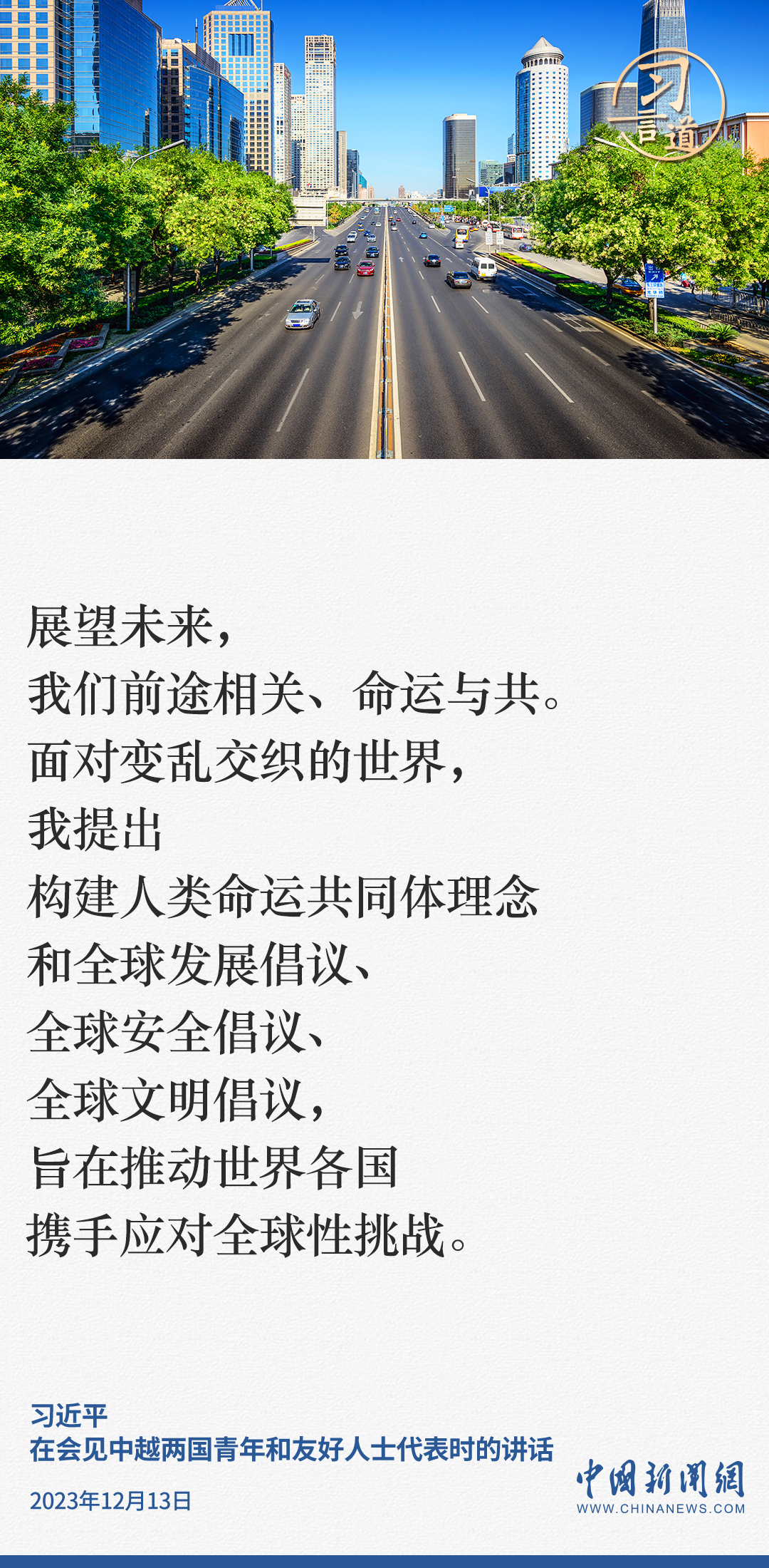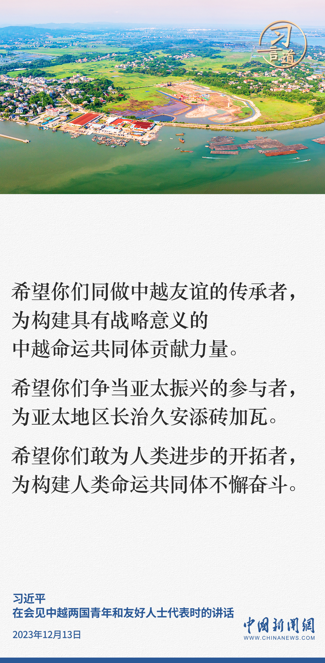 當地時間12月13日下午,中共中央總書記、國家主席習近平和夫人彭麗媛在河內同越共中央總書記阮富仲夫婦共同會見中越兩國青年和友好人士代表。習近平指出——