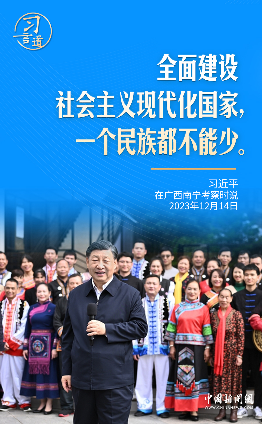12月14日,在廣西南寧名為蟠龍社區的多民族聚居社區里,習近平再次強調了“一個民族都不能少”。