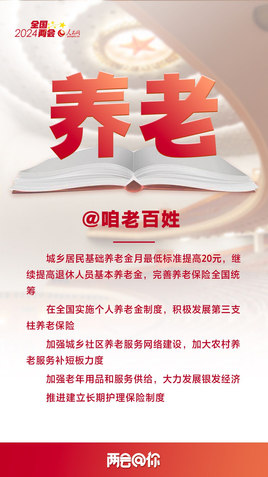 編者按:3月5日,十四屆全國人大二次會議開幕,國務院總理李強代表國務院向大會作政府工作報告,提出2024年經濟社會發展總體要求和政策取向。即日起,人民網推出“兩會@你”系列報道,聚焦與百姓生活息息相關的熱點議題,梳理解讀全國兩會上的重要民生看點,以饗讀者。