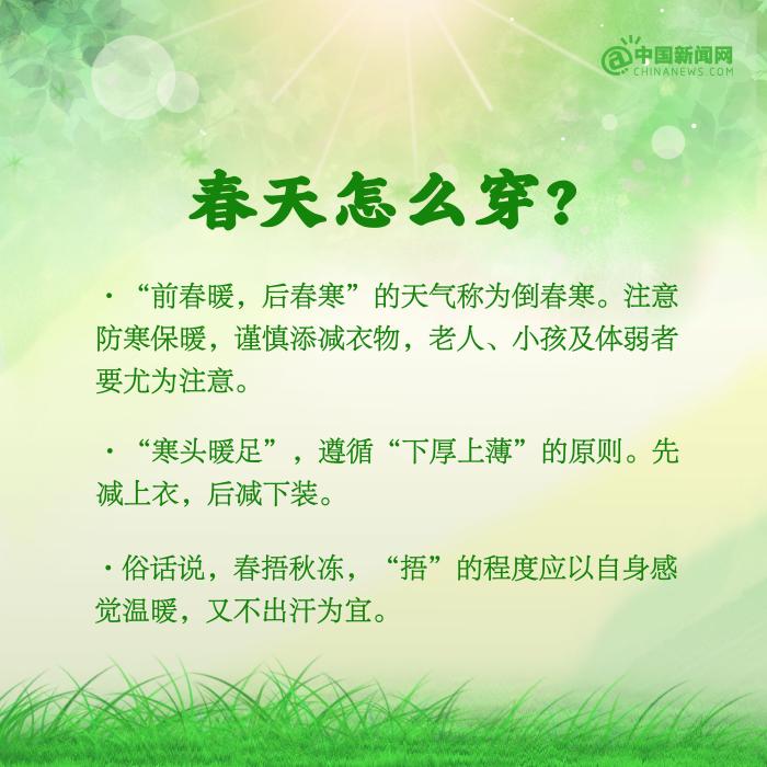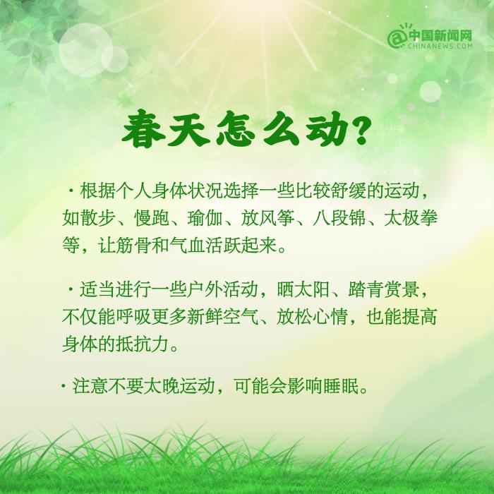 春天是萬物復蘇的季節,也是調養身體的好時節。①每天保證6~8小時的睡眠,避免熬夜;②適當進行一些戶外活動,曬太陽、踏青賞景等;③不過早減衣,穿衣注意下厚上薄;④注意清淡飲食,多吃蔬菜,多喝水……春季養生要注意什么?詳戳↓↓