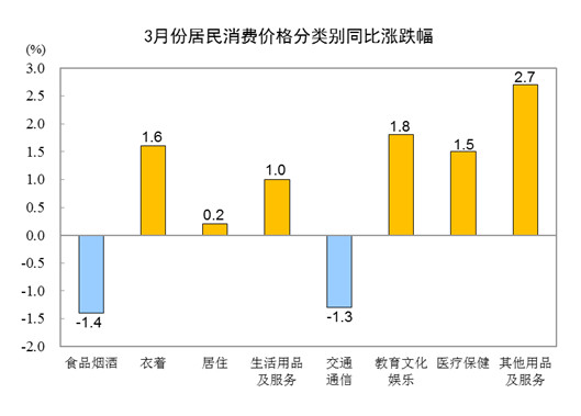 國家統(tǒng)計(jì)局:3月份居民消費(fèi)價(jià)格同比上漲0.1%