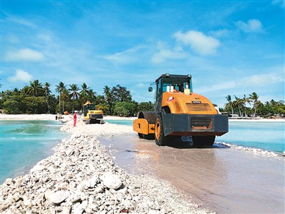 在基里巴斯首都塔拉瓦,中國企業正在為當地民眾修筑一座便橋。