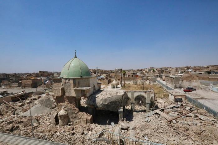 2019年7月4日,在伊拉克摩蘇爾老城拍攝的努爾清真寺。新華社發(哈利勒·達伍德攝)