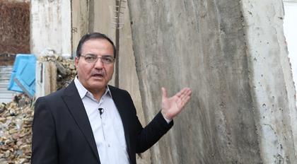 2023年3月15日,在伊拉克首都巴格達,巴格達分社的伊拉克籍雇員賈邁勒站在防爆墻前。新華社發(董亞雷攝)