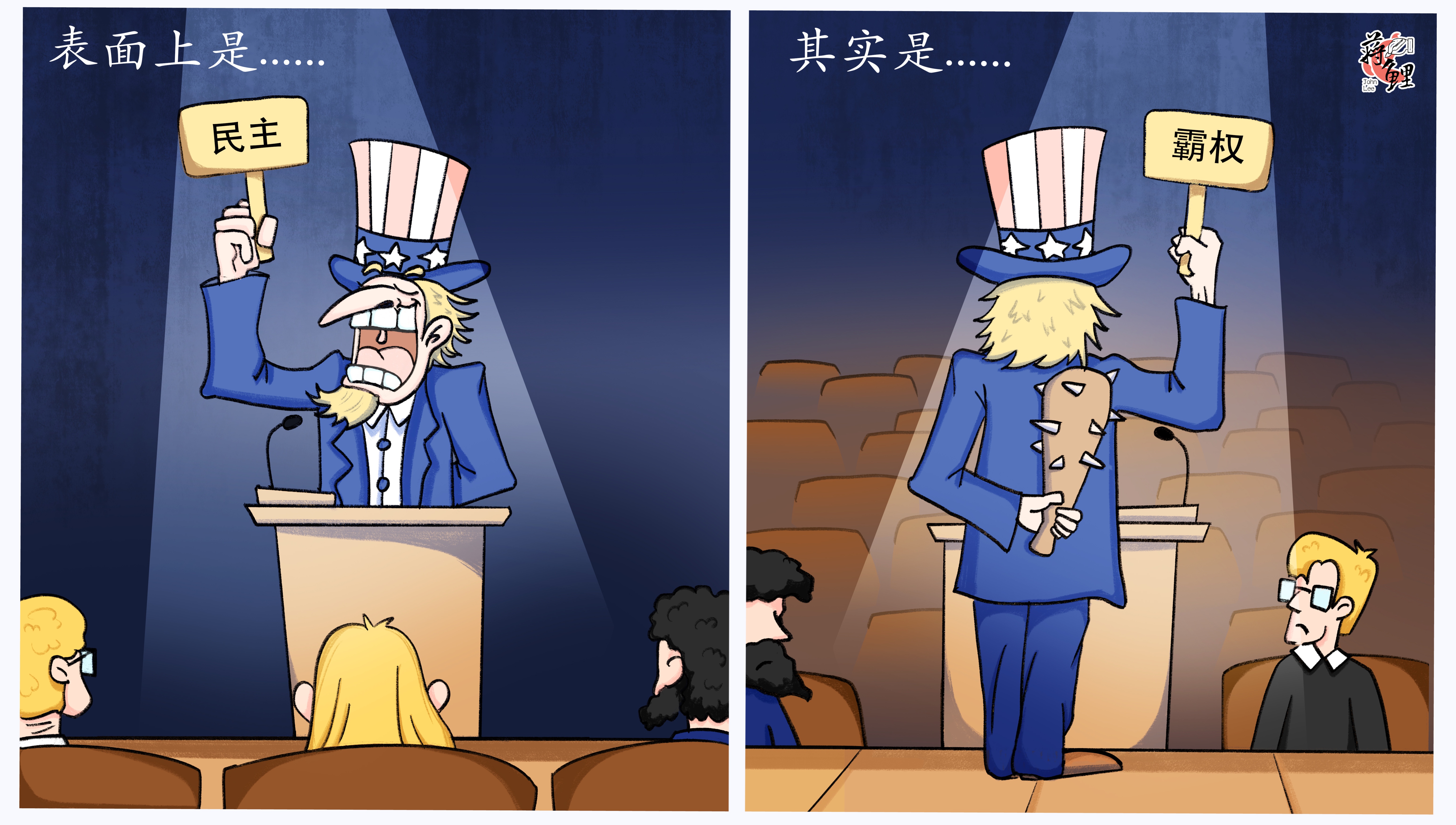 美國自身在民主人權領域臭名昭著,沒有資格充當民主人權的“教師爺”。美方舉辦所謂“民主峰會”是以“民主”為幌子、以霸權為里子,維護民主是假,鞏固霸權是真。如果真要話民主之“道”,相互尊重、開放包容、合作共贏才是正道。(蔣鯉)