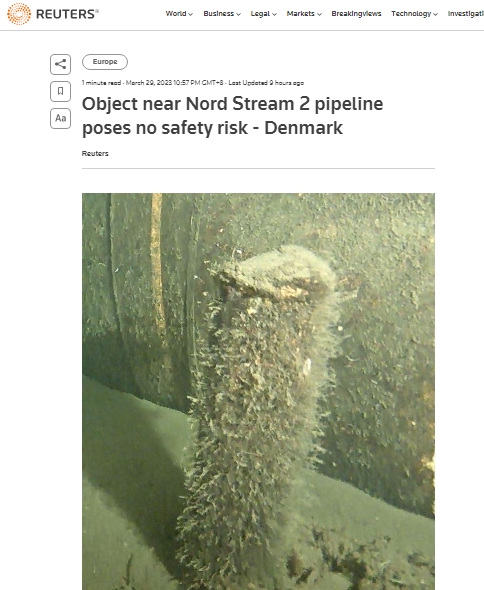 此前俄羅斯方面曾建議丹麥檢查“北溪2”管道附近是否存在其他爆炸物,稱在距離爆炸現場約30公里的地方發現一不明物體。該物體呈圓柱形,高約40厘米,直徑約10厘米。