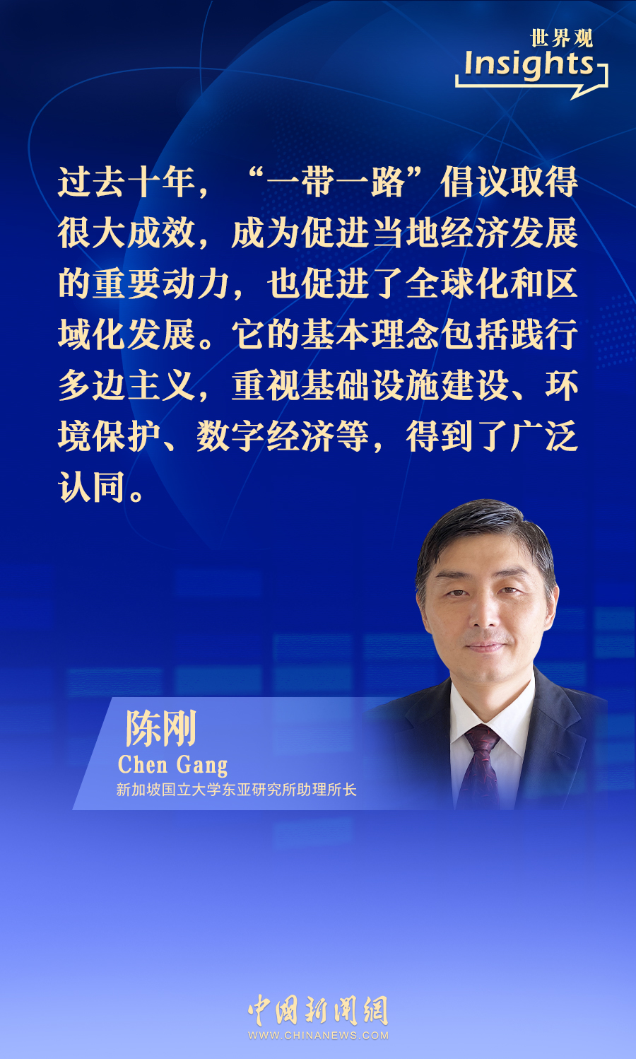 陳剛舉例說,過去十年,“一帶一路”倡議取得很大成效,成為沿線國家經濟發展的重要動力,也促進了全球化和區域化發展。它的基本理念包括踐行多邊主義,重視基礎設施建設、環境保護、數字經濟等。這一倡議,在世界范圍內得到了廣泛認同。