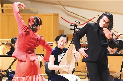 音樂會在一曲熱烈歡快的《春節序曲》中拉開序幕。兩國樂團合奏的新創曲目《陽光永遠照耀著我們的友誼》融合了中西音樂特色,令觀眾耳目一新;京劇《貴妃醉酒》向西班牙觀眾展現了中國傳統戲曲文化的獨特風采;西班牙歌唱家用中文和西文演唱《我愛你中國》,以歌聲傳遞了兩國民眾間的友好情誼;中國樂器笙演奏的《西班牙斗牛曲》“混搭”西班牙“國粹”弗拉門戈舞蹈,更是令人擊節叫好。兩國藝術家以樂會友、以藝通心,通過中西音樂元素的碰撞與交融,展現了東西方文化的互融互鑒。