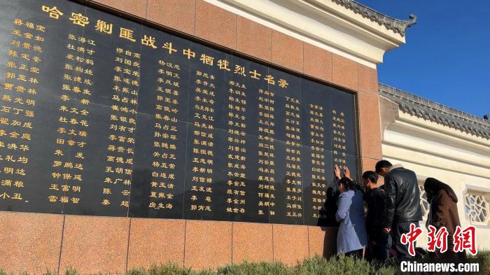 清明節前夕,在新疆哈密烈士陵園哈密剿匪戰斗中犧牲烈士名錄墻前(以下簡稱“英名墻”),竇來強、竇剛強、竇瑞琴、竇調蕊、焦霞霞五位從甘肅天水趕來的年輕人,撫摸著“英名墻”上其中一個名字,放聲痛哭。