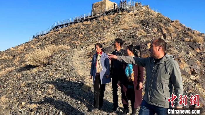 李世宗烈士孫子孫女一行在當年伊吾四十天保衛戰戰斗發生地勝利峰?!⊥鹾?攝