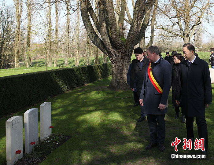 中新社比利時波普林格4月5日電 (記者 德永健)4月5日清明節,中國和比利時官員來到曾經的一戰主戰場比利時波普林格市,祭掃長眠在此的一戰華工。