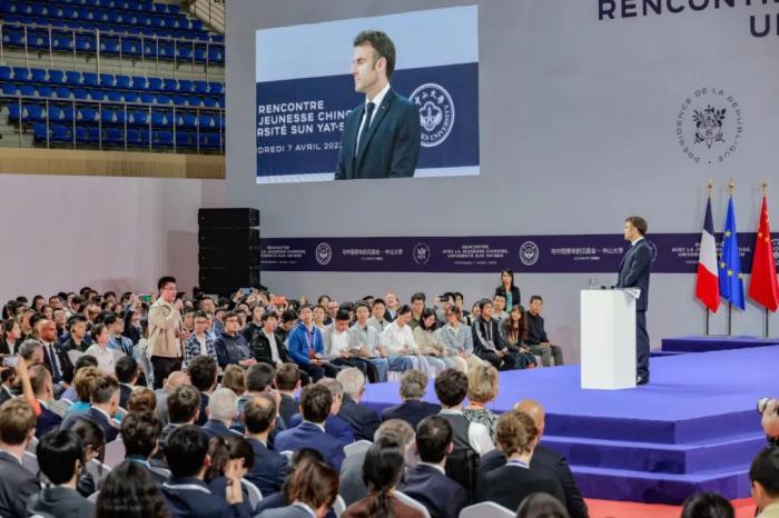 馬克龍在演講中說,希望青年人能夠共同應對當今世界包括氣候變化、生物多樣性、科技等方面的挑戰。“當今經濟增長的挑戰尤其是脫碳增長的挑戰非常大,對于青年學子來說通過研究、創新應對挑戰非常重要。”他提到,中山大學中法核工程與技術學院為此開展了大量的相關工作。