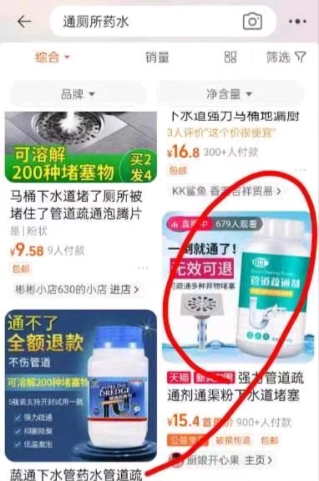 該負責人還提到,自己公司里疏通劑分為185元/斤和285/斤兩種,都是廠家配貨,和網上售賣的那些疏通劑,產品效果不一樣。