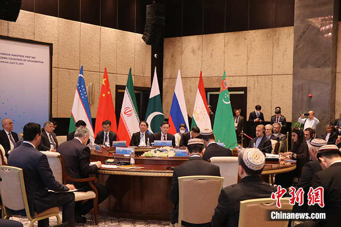 當地時間4月13日,烏茲別克斯坦撒馬爾罕,第四次阿富汗鄰國外長會舉行。 中新社記者 張碩 攝