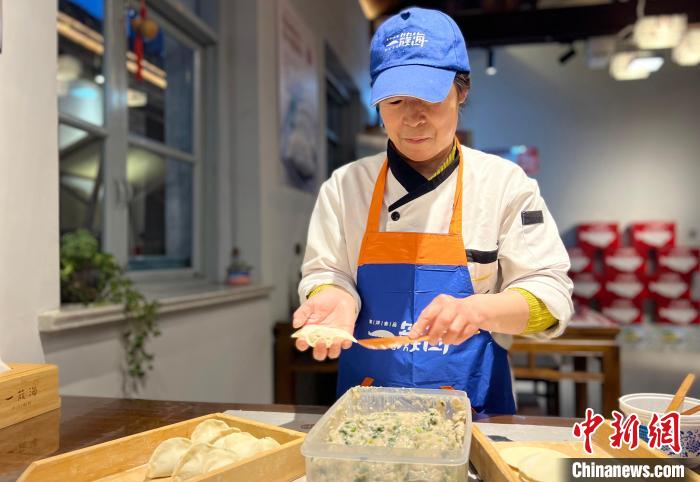 在山東煙臺一家水餃店,廚師在包鲅魚水餃。 中新社記者 王嬌妮 攝