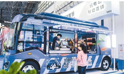 圖為消博會上展出的純電動移動便利店。