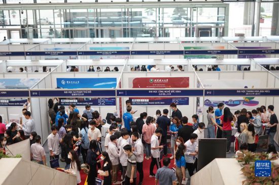 4月22日,在位于越南首都河內(nèi)的國(guó)家會(huì)議中心,留學(xué)咨詢者絡(luò)繹不絕。新華社記者 胡佳麗 攝