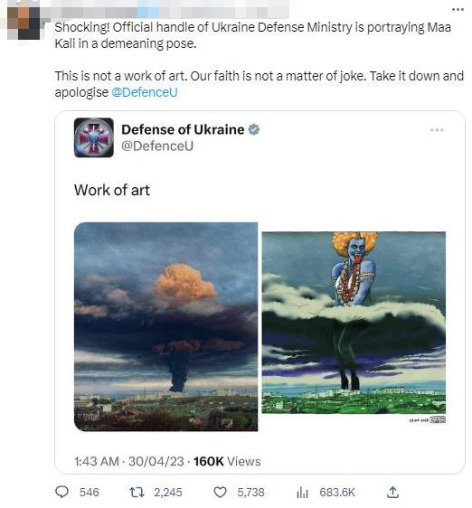 《印度斯坦時報》稱,這張圖被認為丑化了印度教女神,是“對印度教的不尊重”,推文“遭到強烈反對”“傷害了印度人的感情”。甚至有印度網友呼吁印度官方干預此事。目前,烏克蘭國防部已經刪除該推文。