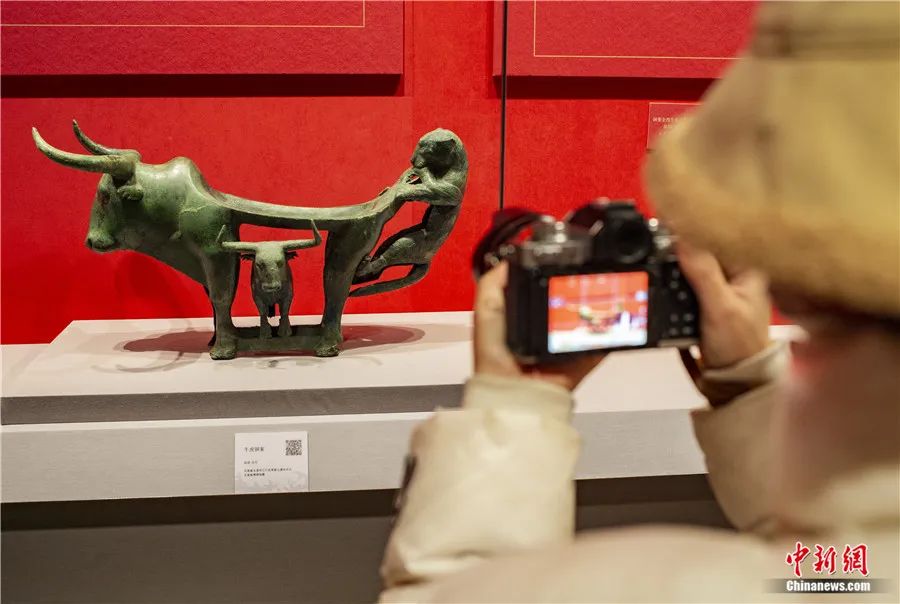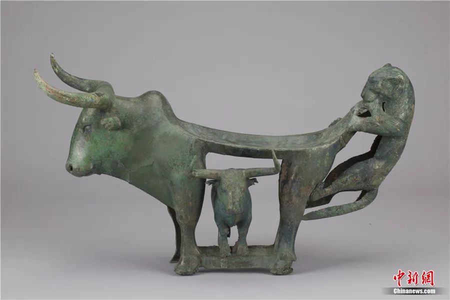 此外,還有專家延伸解讀:在古滇國,虎為百獸之王,象征權威,牛則是財富和生命的標志。牛虎銅案中的虎、牛形象成為滇人重點表達的主題,顯示了滇人崇虎、崇牛之情,表達了對權力、財富和生命的向往。