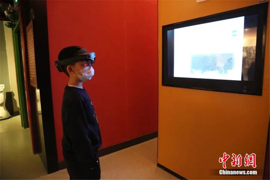 新疆哈密市小朋友利用MR眼鏡對彌勒會見記進行參觀體驗。新疆哈密市博物館 供圖