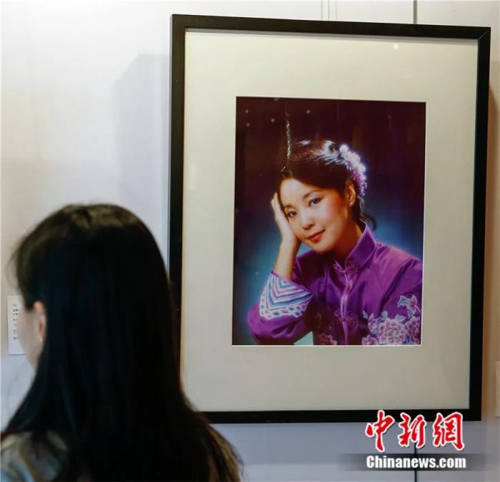 一位女士在北京華辰秋拍預展現場觀看二十世紀八十年代拍攝的鄧麗君肖像照。張浩 攝