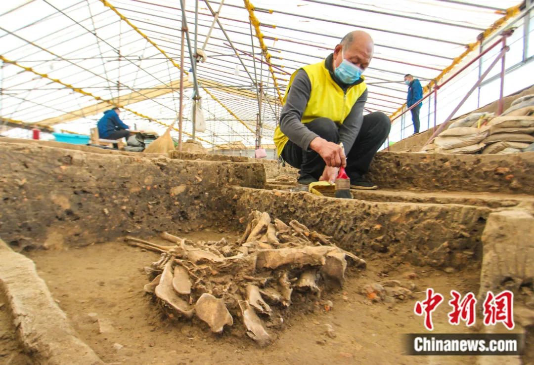 工作人員在河南南陽黃山遺址考古發掘現場進行清理作業。高嵩 攝