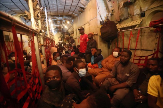 5月4日,從蘇丹撤離的尼日利亞公民即將抵達阿布賈。新華社發(阿德拉昆攝)