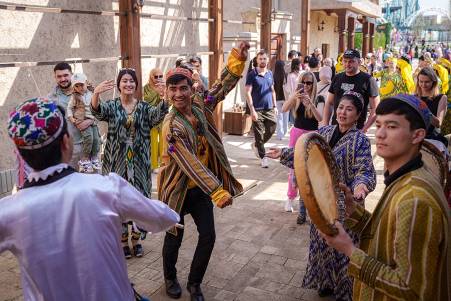 ↑人們在烏茲別克斯坦首都塔什干慶祝納烏魯斯節。