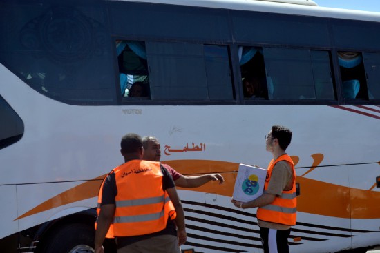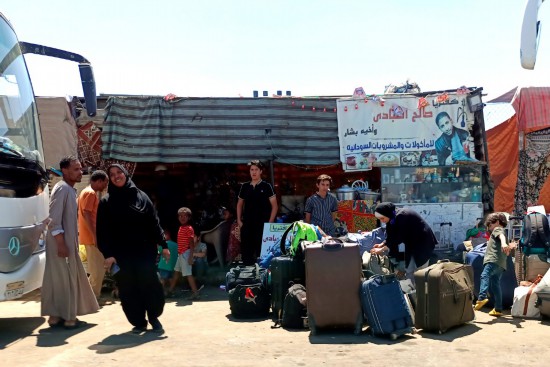5月2日,逃離蘇丹的難民抵達埃及南部阿斯旺省的一處汽車站(手機拍攝)。新華社發(拉德萬攝)