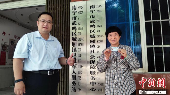 梁洲輔5月11日順利幫助母親辦理了武鳴區城鄉居民基本養老保險和醫療保險,并成為廣西首例辦理了臺灣居民居住證但沒有在當地就業,亦可成功辦理城鄉居民基本養老保險的臺胞。梁洲輔為母親按每年6000元(人民幣,下同)進行繳費,一次性補繳了15年共9萬元的養老金。今年6月起,張月霞每月便可領到800多元的養老金。當天,張月霞也成功辦理了城鄉居民基本醫療保險。