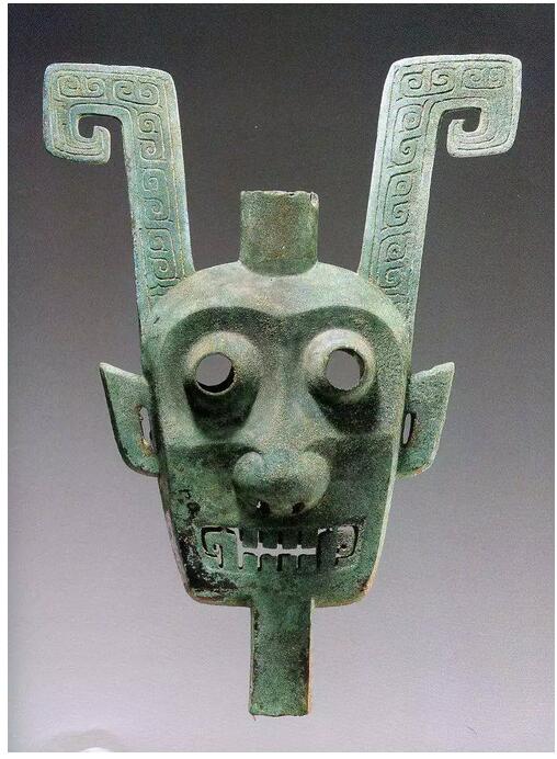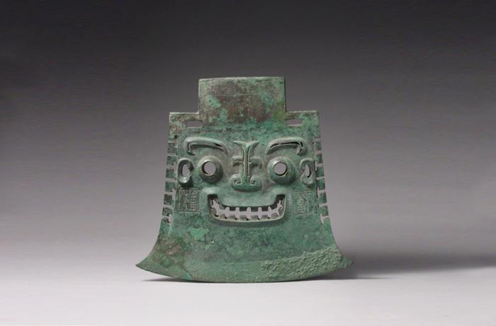 雙面神人青銅頭像看上去呈中空扁體的樣貌,面容透著一股神秘與威嚴。但不經意間望去,表情卻像正在發呆,“看我空洞的眼神”。