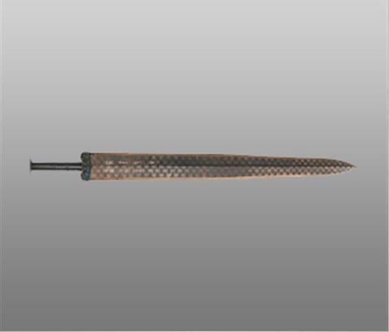 越王勾踐劍天下聞名。劍身中脊起棱,飾黑色菱形花紋。劍格正面嵌藍色琉璃,背面綠松石。歷經兩千余年,紋飾仍然清晰精美、劍身鋒利無比。