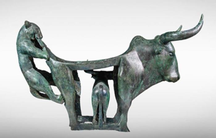 作為古滇國的一件祭器,牛虎銅案特殊的組合造型使整個銅案重心平穩,大小和諧,動靜均衡統一,在力學和美學上都達到了極高水平,是云南青銅文化藝術的杰作。