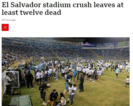 據英國廣播公司(BBC)報道,當晚,圣薩爾瓦多庫斯卡特蘭球場舉行一場全國足球賽的四分之一決賽。不少因購買假票無法入場的球迷試圖強行擠入球場,其間發生人員踩踏,造成傷亡。多名傷者傷情較重。