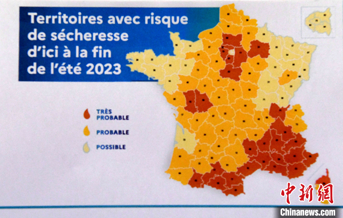 法國(guó)官方本周發(fā)表的一份最新報(bào)告顯示,法國(guó)今年炎熱干旱和水資源短缺問題可能比去年更加嚴(yán)重。報(bào)告公布的地圖標(biāo)明了今年夏季面臨干旱的省份。法國(guó)本土96個(gè)省份中有28個(gè)省份面臨很高的干旱風(fēng)險(xiǎn),這其中包括地中海沿岸多個(gè)省份和巴黎大區(qū)多個(gè)省份。 中新社記者 李洋 攝
