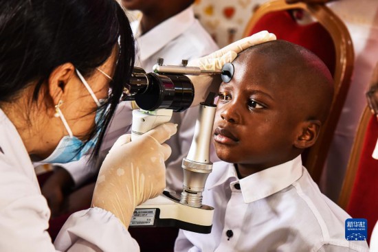 在喀麥隆首都雅溫得“孩子為重”孤兒中心,中國駐喀大使館聯(lián)合中國第22批援喀醫(yī)療隊為來自兩所孤兒中心的約100名孤兒檢查了視力、口腔和心肺功能等。