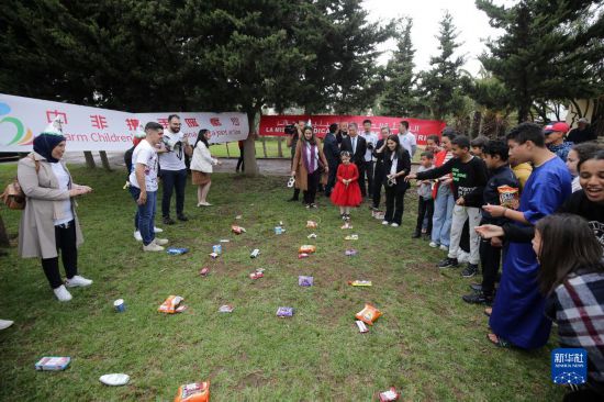 5月31日,在阿爾及爾達拉利亞SOS兒童村,中國駐阿爾及利亞大使館、中國援阿醫(yī)療隊聯(lián)合中國建筑股份有限公司阿爾及利亞公司舉辦兒童節(jié)活動。新華社發(fā)