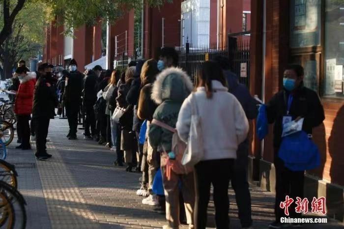資料圖:公務(wù)員考試考場外,工作人員核驗考生信息。 中新社記者 蔣啟明 攝