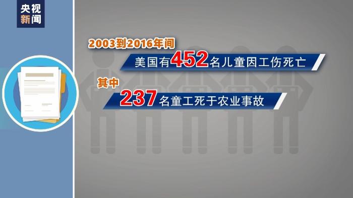 農業領域是美國雇傭童工的重災區之一。據美國非營利組織“農場工人就業項目聯合會”提供的數據,美國仍有50萬至80萬名童工在農場工作。農場勞作繁重、條件艱苦,童工還常被置于因天氣、農藥及使用農具農機所產生的危險中。《華盛頓郵報》報道,2003年至2016年間,美國有452名兒童因工傷死亡,其中237名童工死于農業事故。