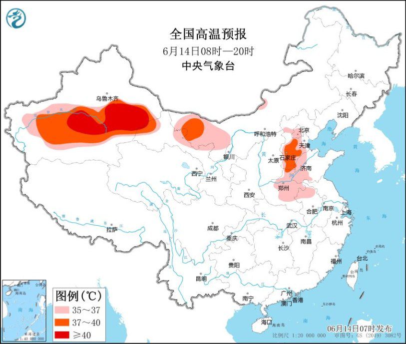 昨天,新疆中南部、內(nèi)蒙古西部、廣東中部等地出現(xiàn)35℃以上高溫天氣,新疆吐魯番局地40~42.9℃。未來三天,華北東部、黃淮及新疆、甘肅西部、內(nèi)蒙古西部等地部分地區(qū)有35~39℃的高溫天氣,新疆吐魯番等地最高氣溫將超過40℃。氣象專家提醒,北方地區(qū)暑氣大漲,天氣炎熱,老人、小孩或體質(zhì)較弱人群應(yīng)盡量避免午后高溫時段外出,同時注意避暑防曬,做好補水降溫的工作。