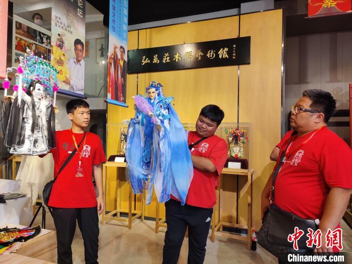 陳鵬安接受中新社記者采訪時說,自10歲開始學金光布袋木偶戲,至今已有近8年時間,課余時間與它為伴。“我的爸爸也是從事這個行業的,從小就喜歡看他表演。現在,我想從他的手上接過這個接力棒。”