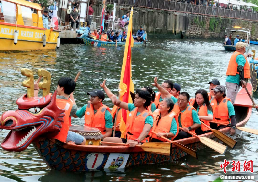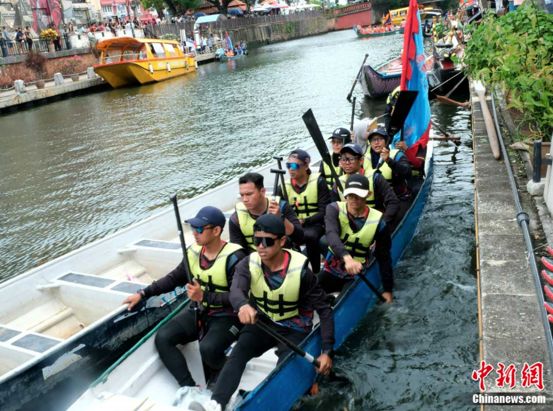 龍舟文化受到馬六甲和馬來西亞各族民眾歡迎。圖為2023年游龍舟活動6月18日開幕,很多參賽隊都由馬來裔或當地非華裔民眾組成。陳悅 攝