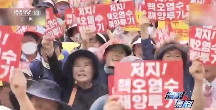 同一天,在日本駐濟州總領事館前,來自濟州自治道漁業和農業團體約2000多人集會抗議,譴責日本將福島核電站核污染水排放入海。