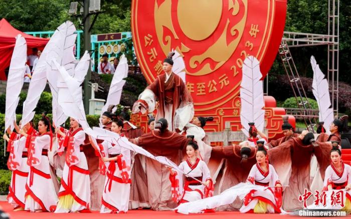 2023年6月21日,“中國端午 詩意宜昌”2023屈原故里端午文化節在湖北省宜昌市秭歸縣屈原故里文化旅游區盛大開幕。圖為開幕式上文藝表演舞蹈《屈原》。張暢 攝